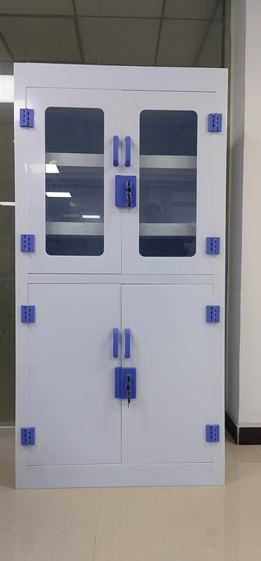 柜体采用1.0MM厚优质冷轧钢板制作,,表面经纯环氧树脂塑粉防静电高温固化处理,经酸碱淋化处理,具防酸碱、防腐蚀的特点;带三件可调层板。