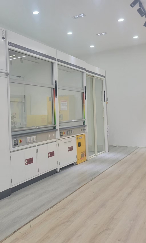 操作台面:全钢通风柜台面采用12.7mm厚酚醛树脂板实心理化板,耐酸碱、耐腐蚀;边缘加厚至25.4mm,防止液体外溢。